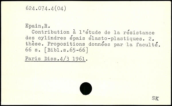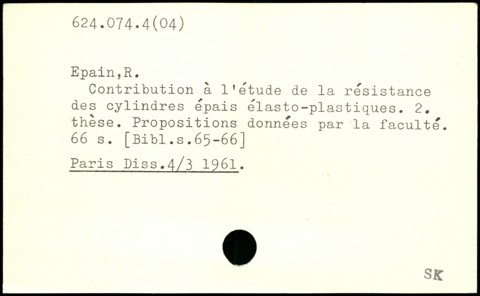 Contribution à l'étude de la résistance des cylindres épais élasto-plastiques. 2. thèse. Propositions données par la faculté.