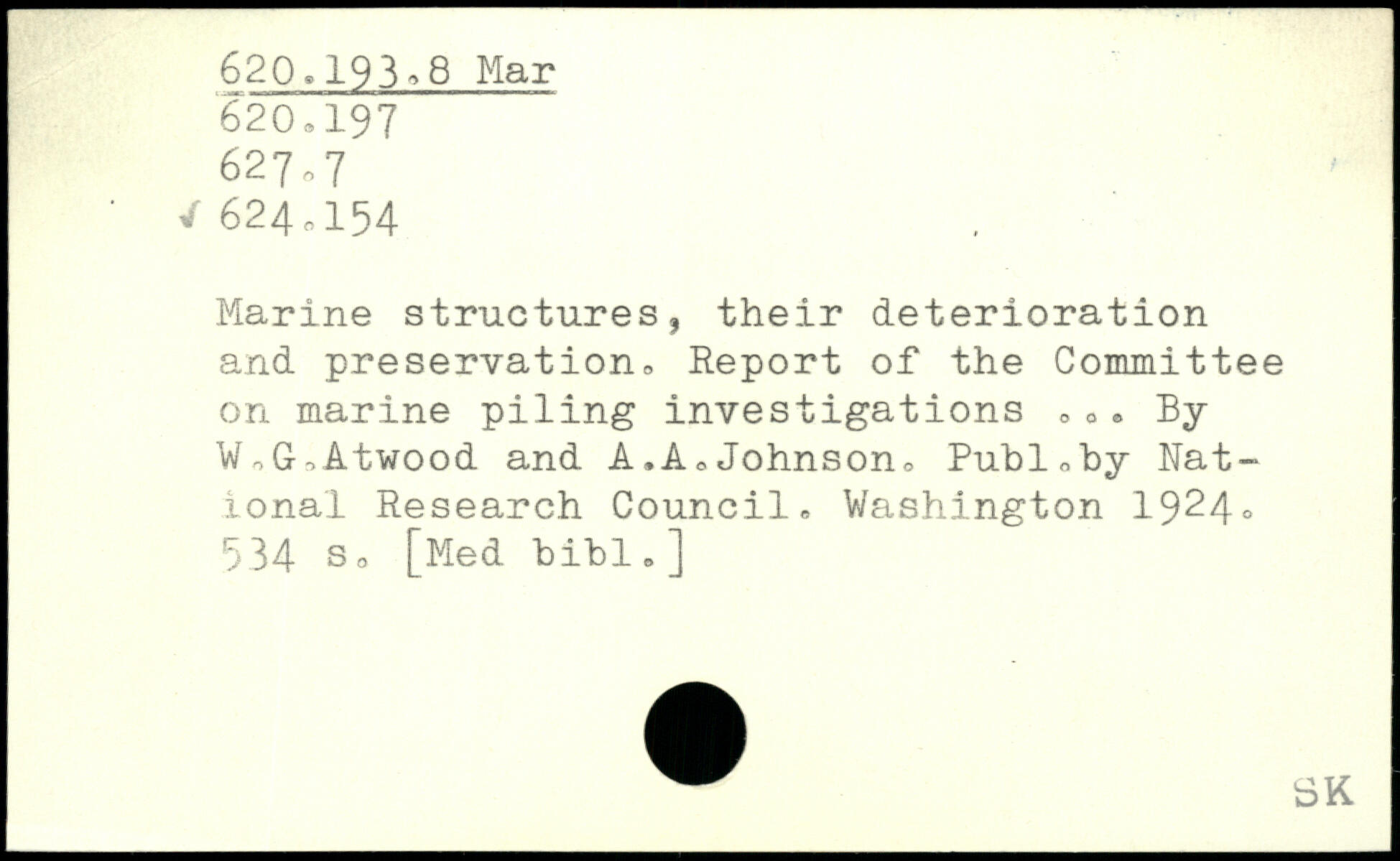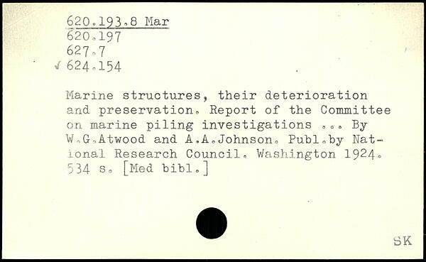 Marine structures, their deterioration and preservation. Report of the Committee on marine piling investigations o0, By W,GnAtwood and A.A,Johnson