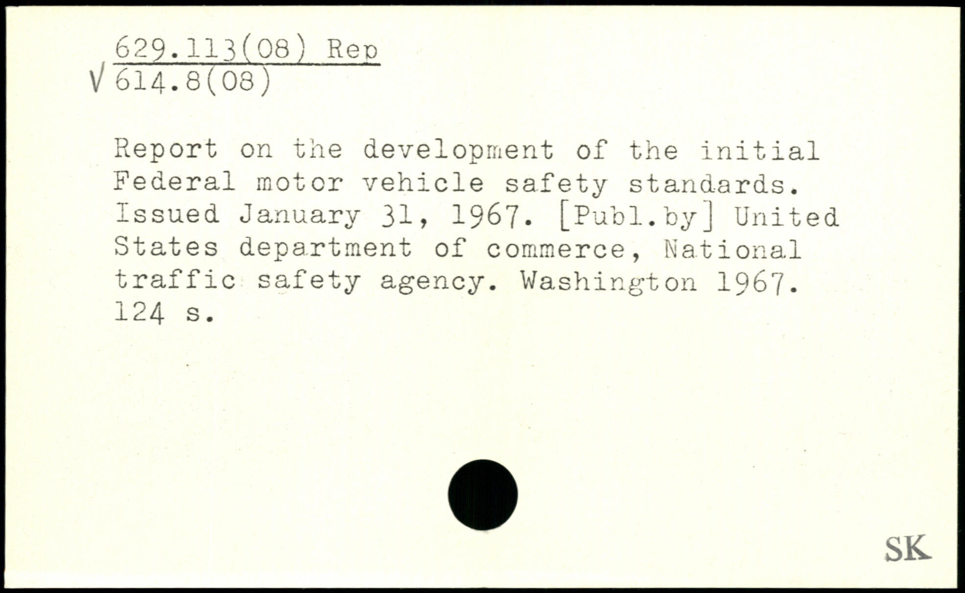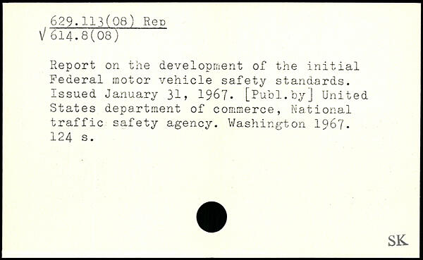 Report on the development of the initial Federal motor vehicle safety standards, issued January 31, 1967-