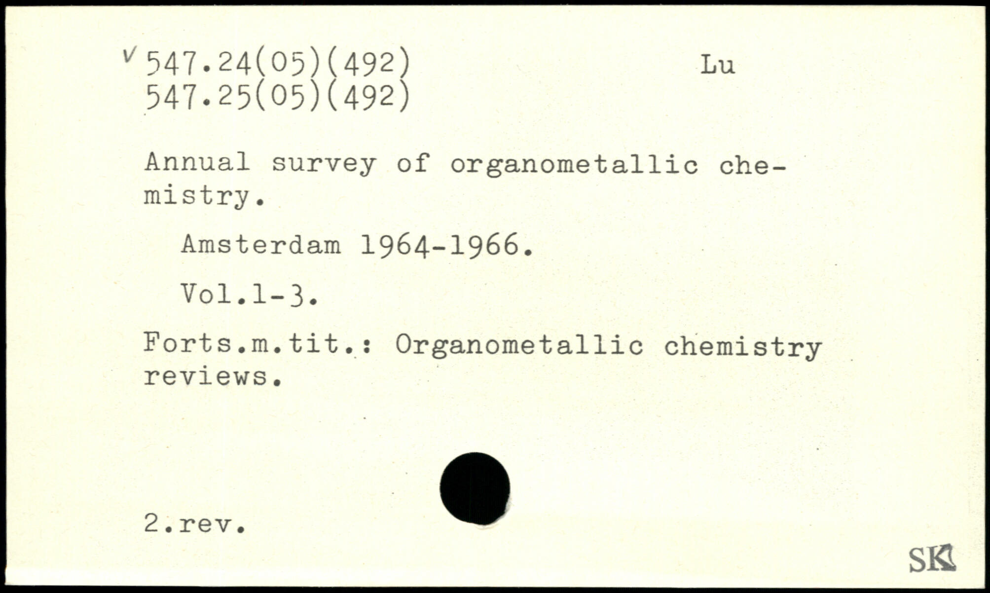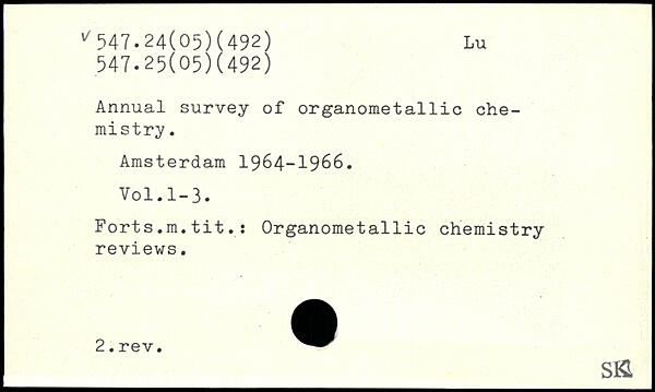 Annual survey of organometallic chemistry. Amsterdam 1964-1966.