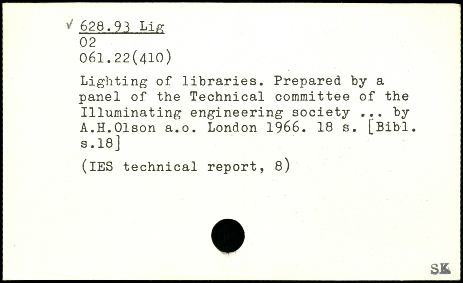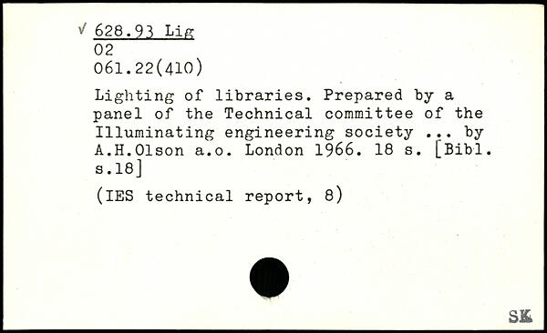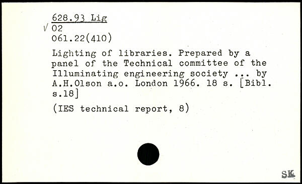 Lighting of libraries. Prepared by a panel of the Technical committee of the Illuminating engineering society ... by A.H.Olson a.o.