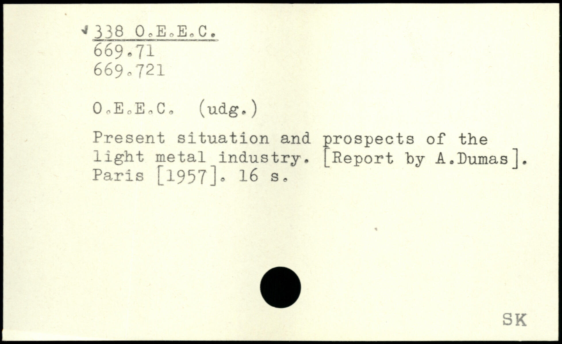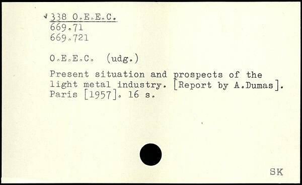 OoE JaC, (udg.) Present situation and prospects of the light metal industry. [Report by A.Dumas].