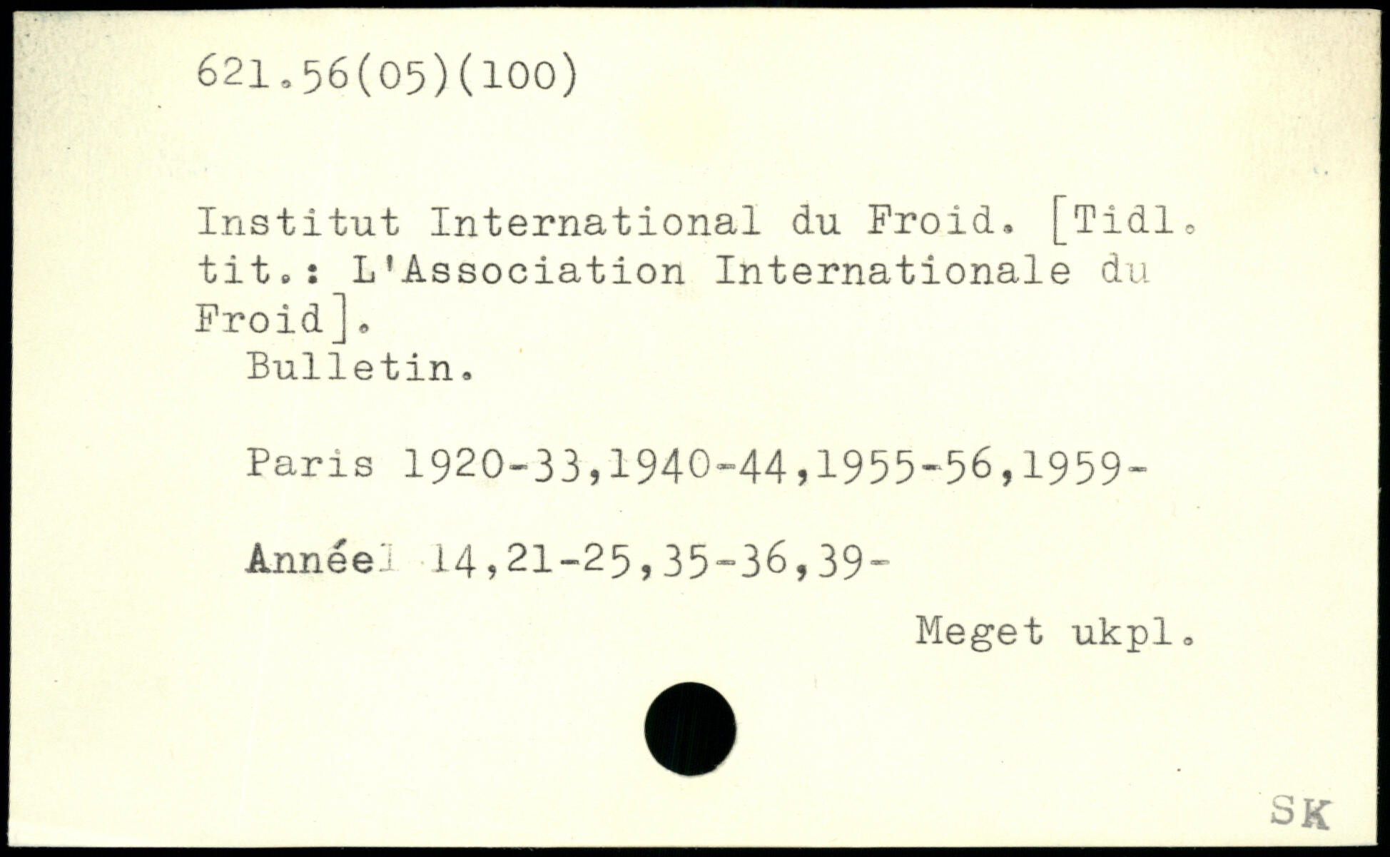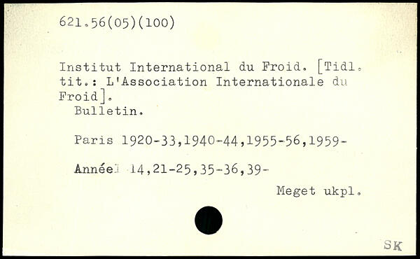 Institut International du Froid, [Tidl, tit.î L'Association Internationale du Froid], Bulletin.