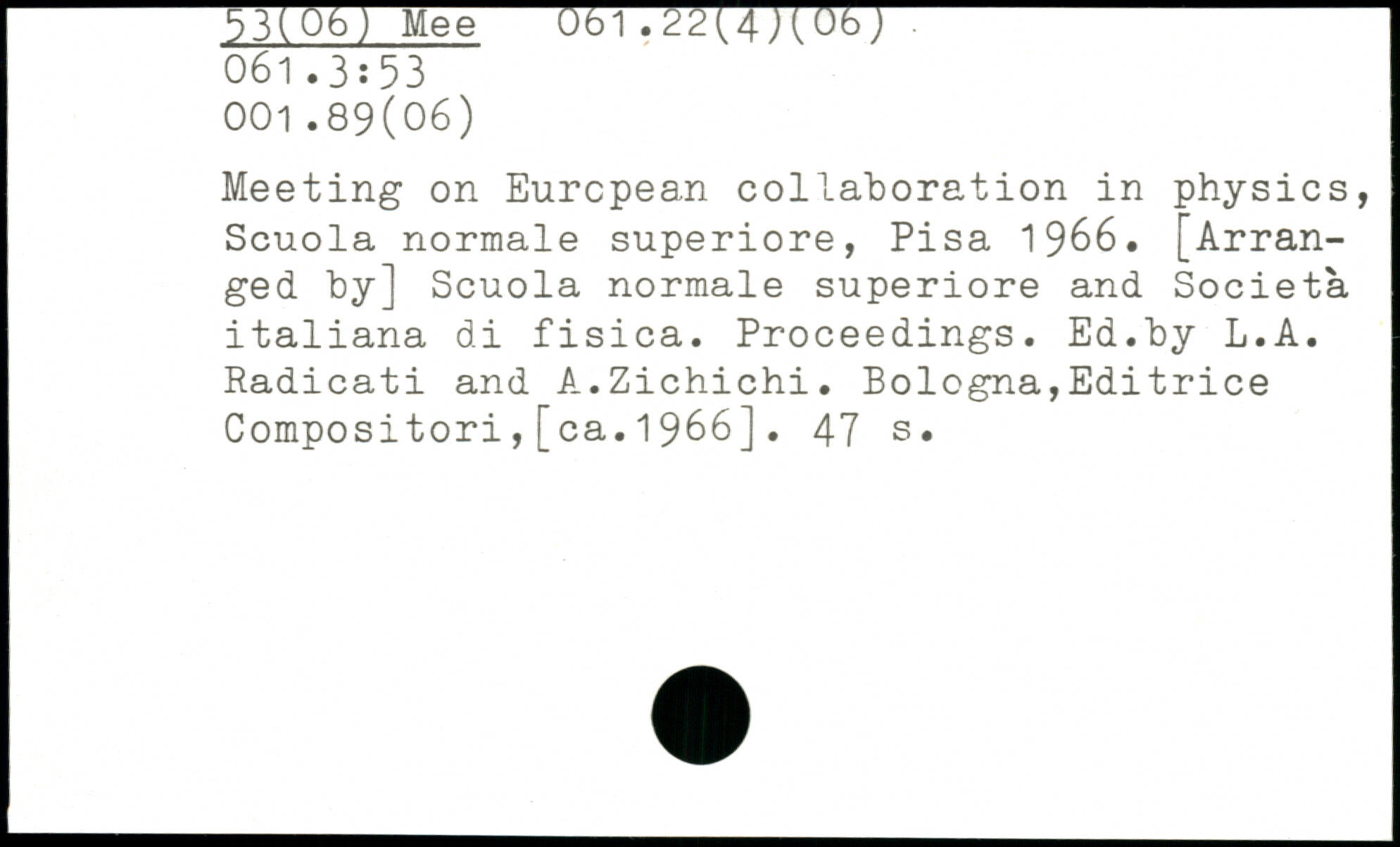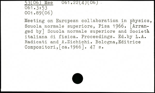 Meeting on European collaboration in physics, Scuola normale superiore