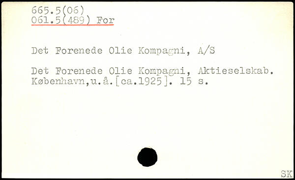 Det Forenede Olie Kompagni, A/S Det Forenede Olie Kompagni, Aktieselskab. København,u.å.ica.1925j.