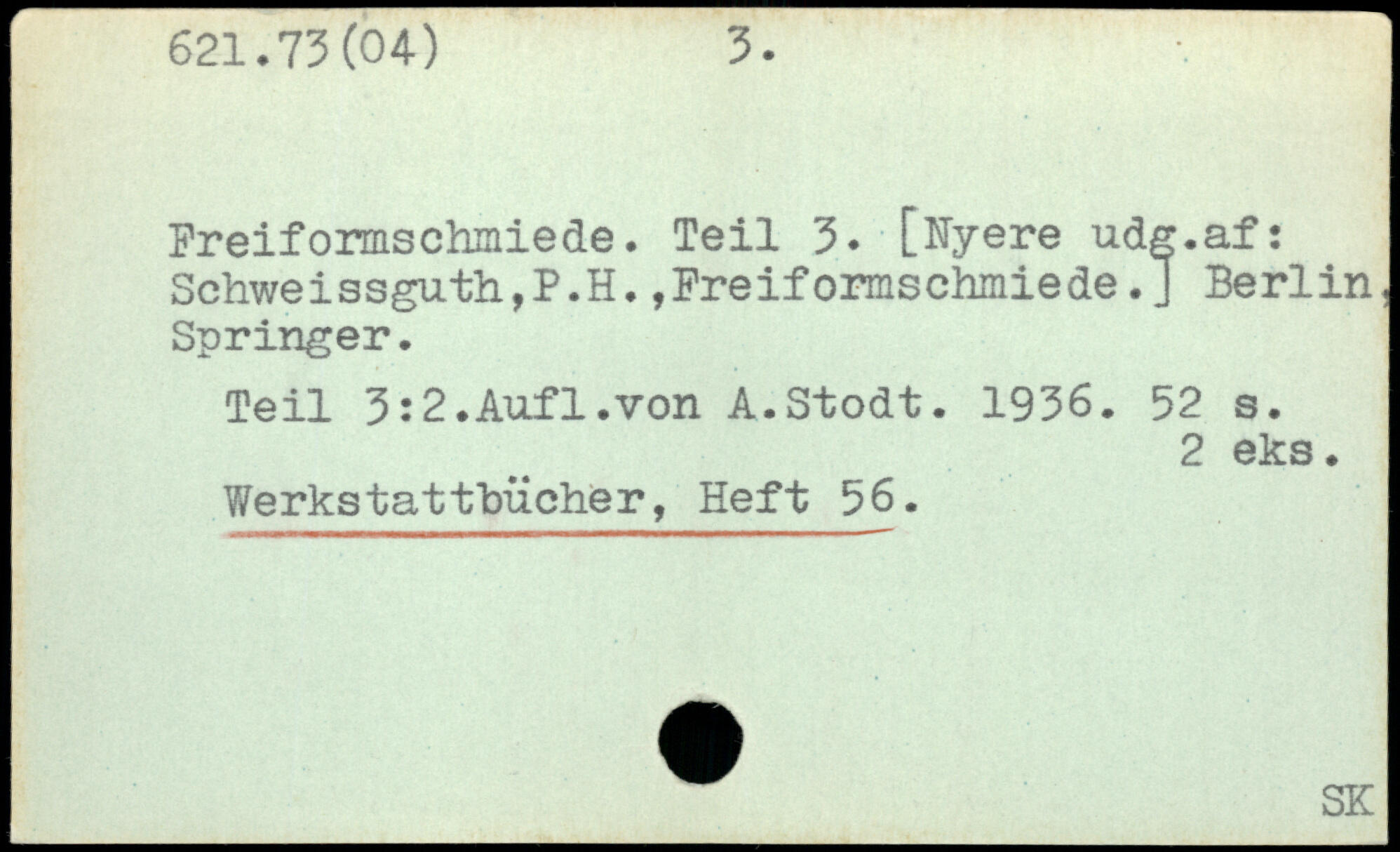 Freiformschmiede. Teil 3. [Nyere udg.af: Schwei ssguth,P.H., Freiformschmie de. J Berlin, Springer. Teil 3: