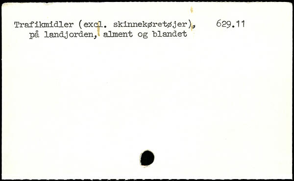 Trafikmidler (excl. skinnekøretøjer)., 629.11 på landjorden,, alment og blandet