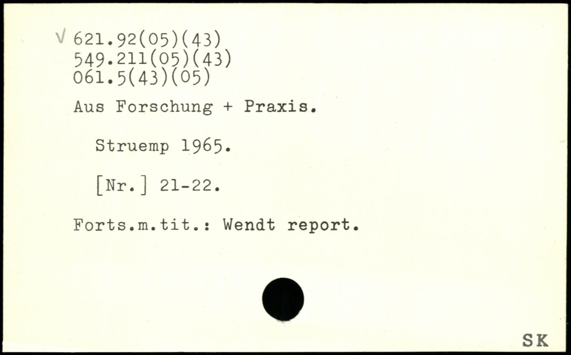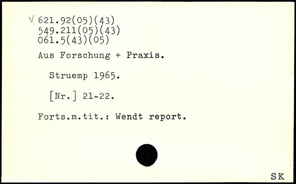 Aus Forschung + Praxis. Struerap 1965, [Nr.] 21-22. Forts.m.tit.: Wendt report.