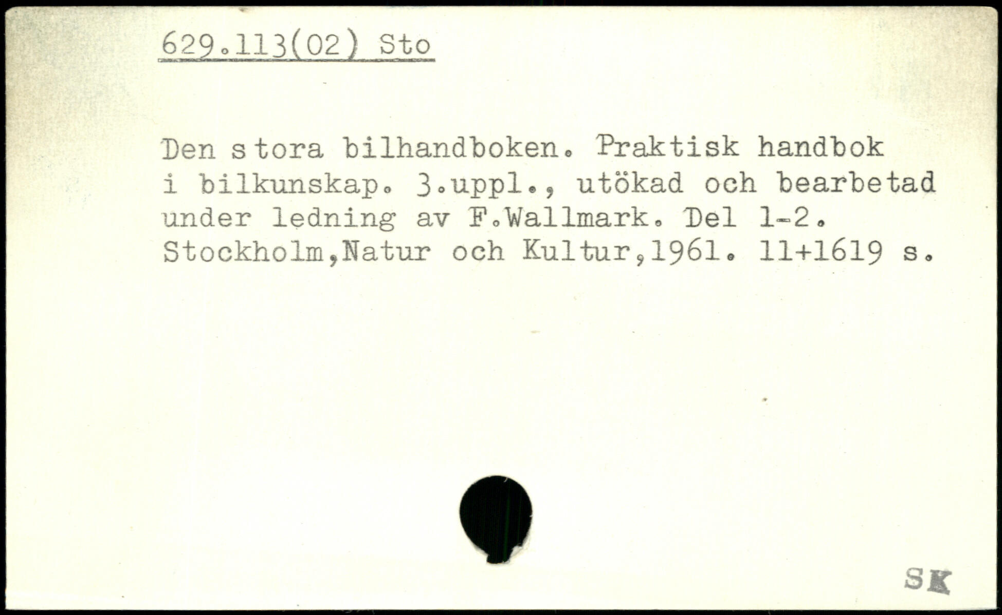 Den stora bilhandboken. Praktisk handbok i bilkunskap. 3,uppl., utökad och bearbetad under ledning av F.Wallmark. Del 1-2.