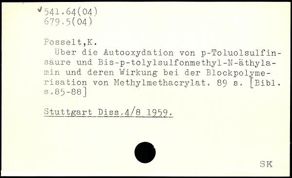 über die Autooxydation von p-Toluolsulfinsäure und Bis-p-tolylsulfonmethyl-N-athyla-min und deren Wirkung bei der Blockpolymerisation von Methylmethacrylat.
