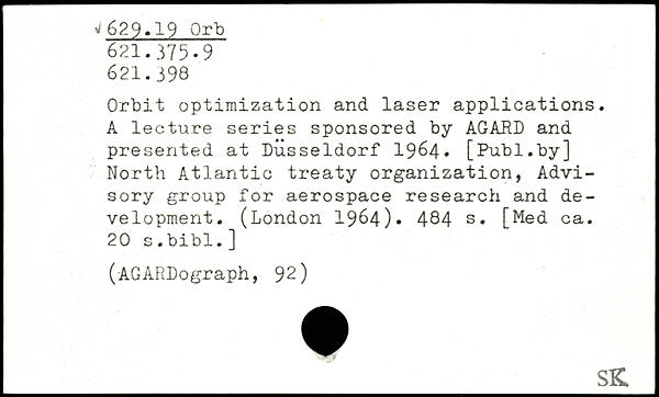 Orbit optimization and laser applications. A lecture series sponsored by AGARD and presented at Düsseldorf 1964