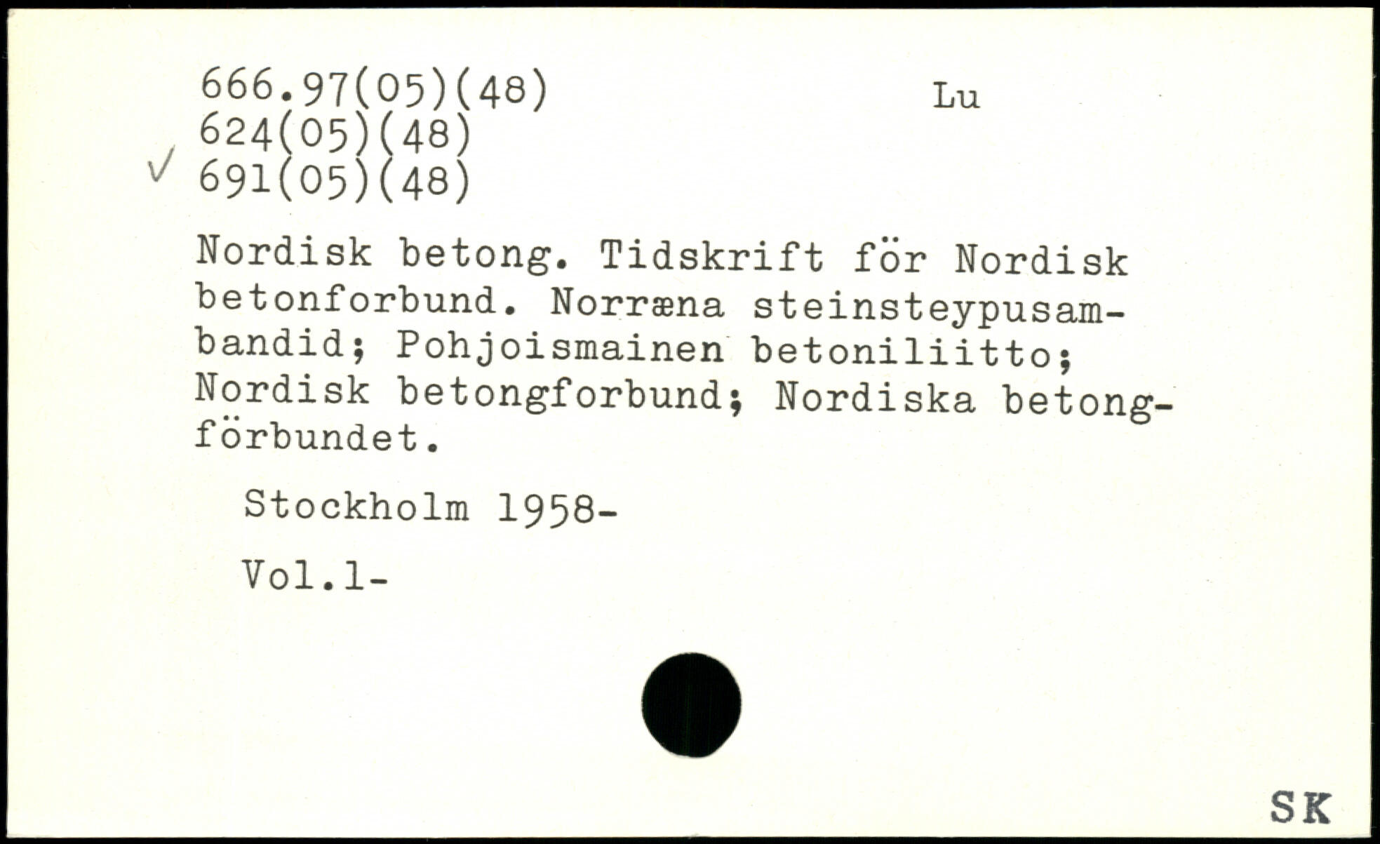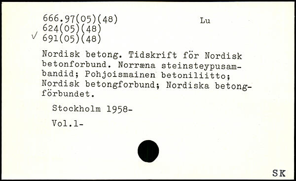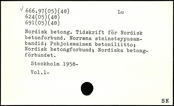 Nordisk betong. Tidskrift för Nordisk betonforbund. Norrsena steinsteypusam-bandid; Pohjoismainen beton1111tto; Nordisk betongforbund; Nordiska betong-förbundet.