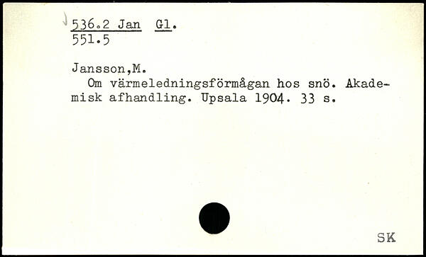 Om värmeledningsförmågan hos snö. Akademisk afhandling. Upsala 1904.
