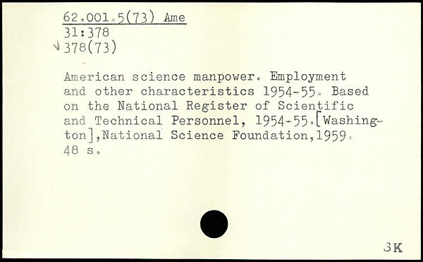 American science manpower. Employment and other characteristics 1954-55< Based on the National Register of Scientific and Technical Personnel, 1954-55,[Washington] ,National Science Foundation,1959-