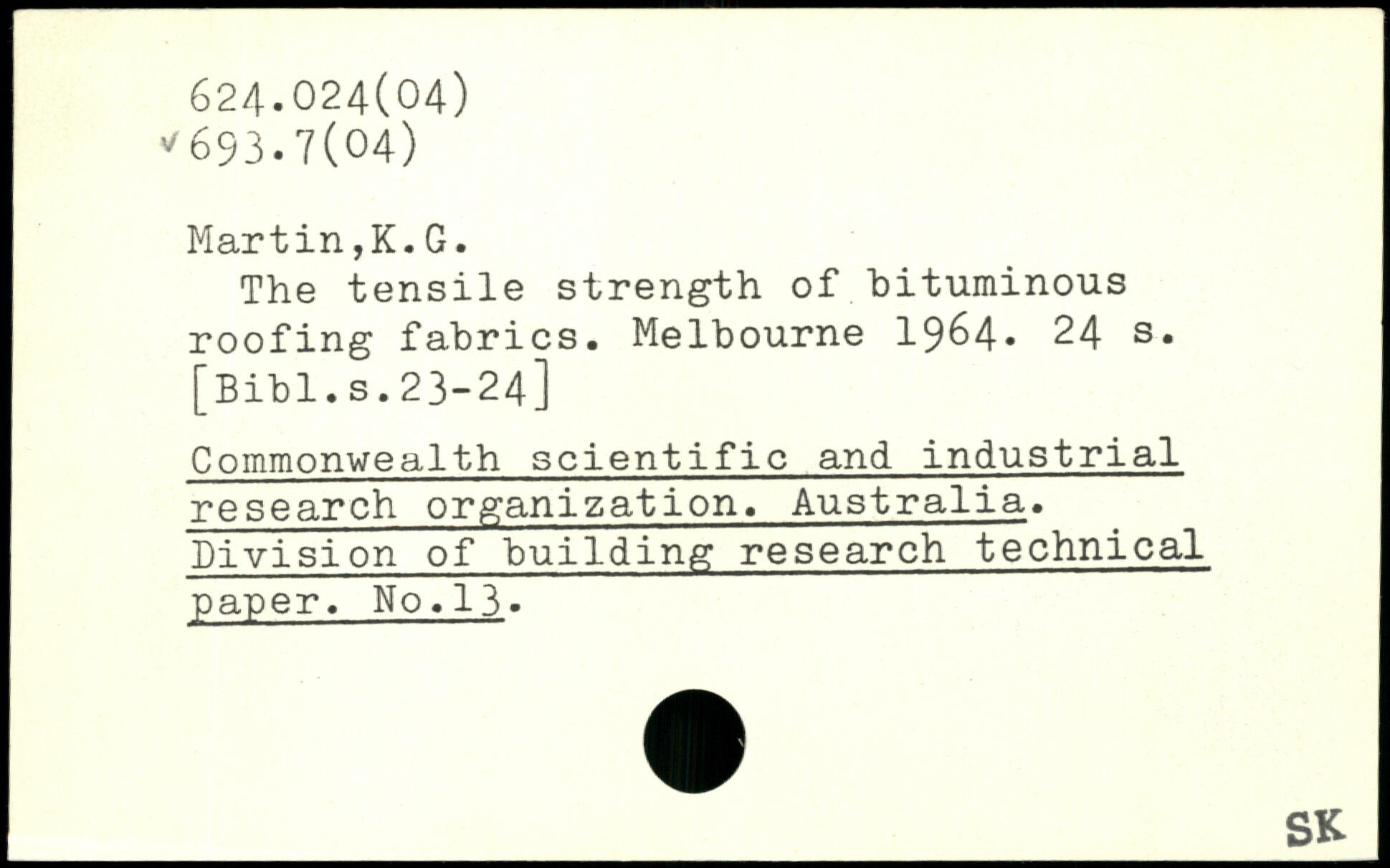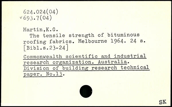 The tensile strength of bituminous roofing fabrics. Melbourne 1964