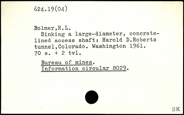 Sinking a large-diameter, concrete-lined access shaft: Harold D.Roberts tunnel,Colorado.