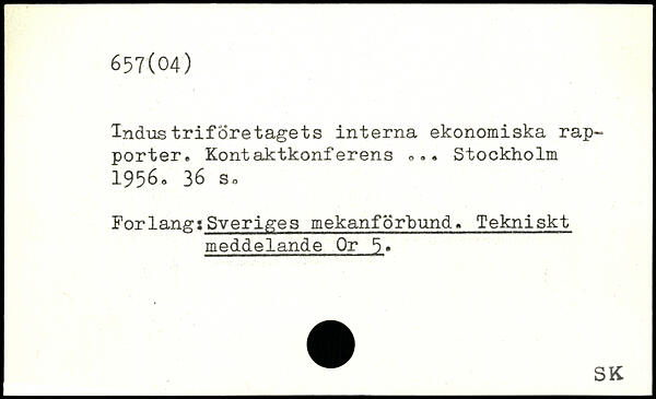 Industriföretagets interna ekonomiska rapporter. Kontaktkonferens <>..
