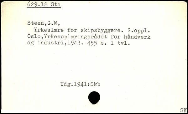 Yrkeslære for skipsbyggere. 2.oppl. Oslo,Yrkesoplæringsrådet for håndverk og industri,1943.