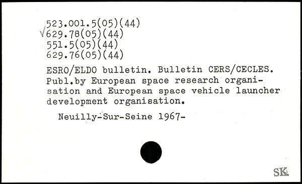 ESRO/ELDO bulletin. Bulletin CERS/CECLES.
