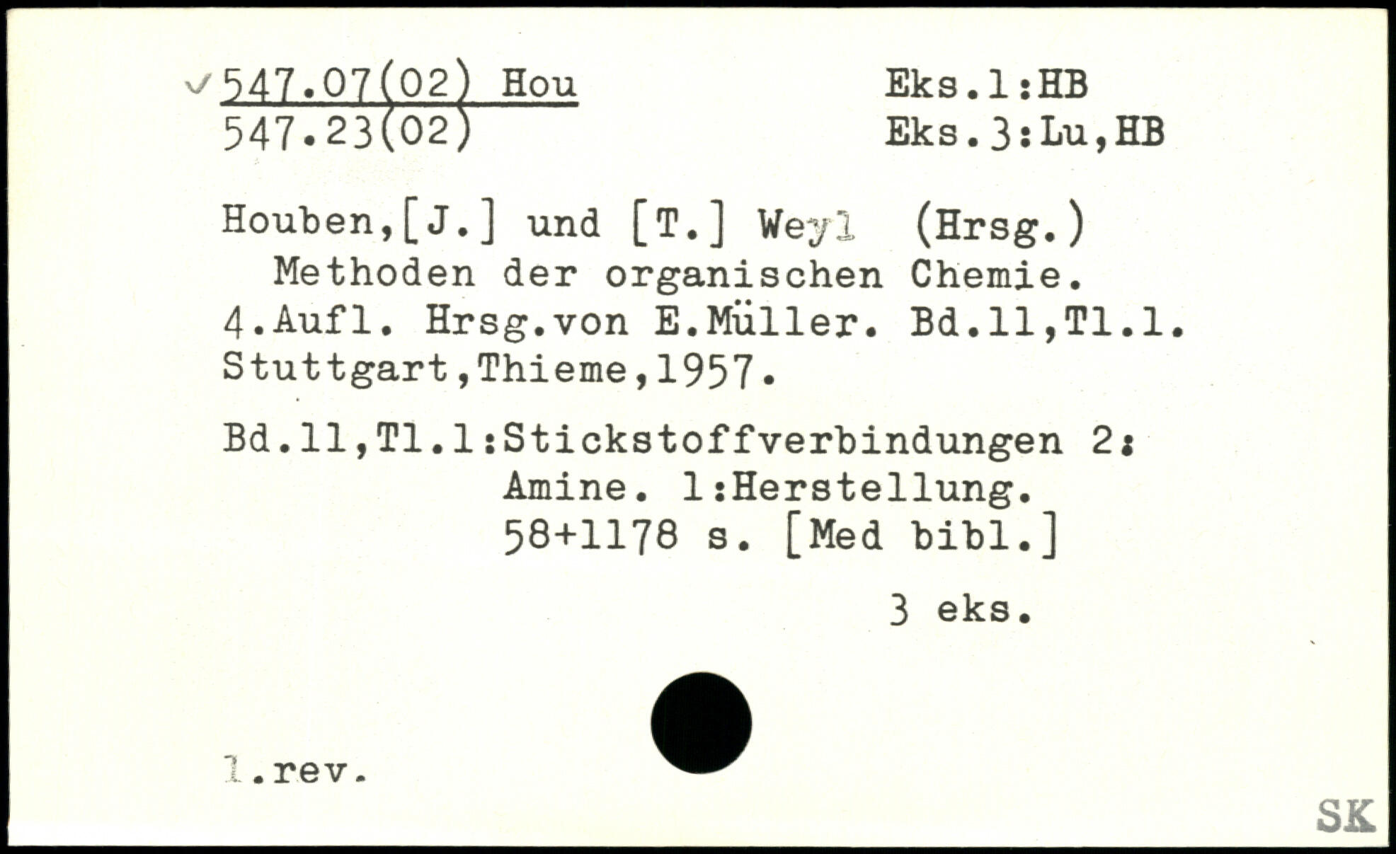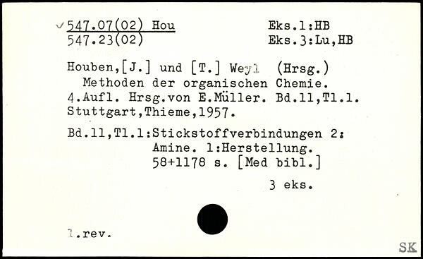 Houben,[,J.] und [T.] Weyl (Hrsg.) Methoden der organischen Chemie.