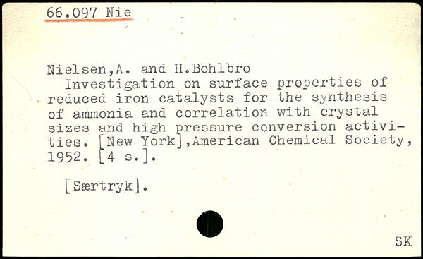 Investigation on surface properties of. reduced iron catalysts for the synthesis of ammonia and correlation with crystal sizes and high pressure conversion activities. Jew York],American Chemical Society, 1952. 4