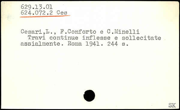 CesariyL., P.Conforto e C.Minelli Travi continue inflesse e sollecitate assialmente. Rorna 1941.