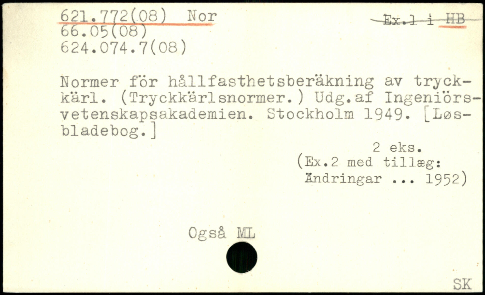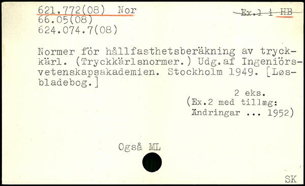 Normer för hållfasthetsberäkning av tryckkärl. (Tryckkärlsnormer.) Udg.af Ingeniörs-vetenskapsakademien.
