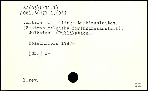 Valtion tekn1111nen tutkinuslaitos. (Statens tekniska forskningsanstalt). Julkaisu. (Publikation).