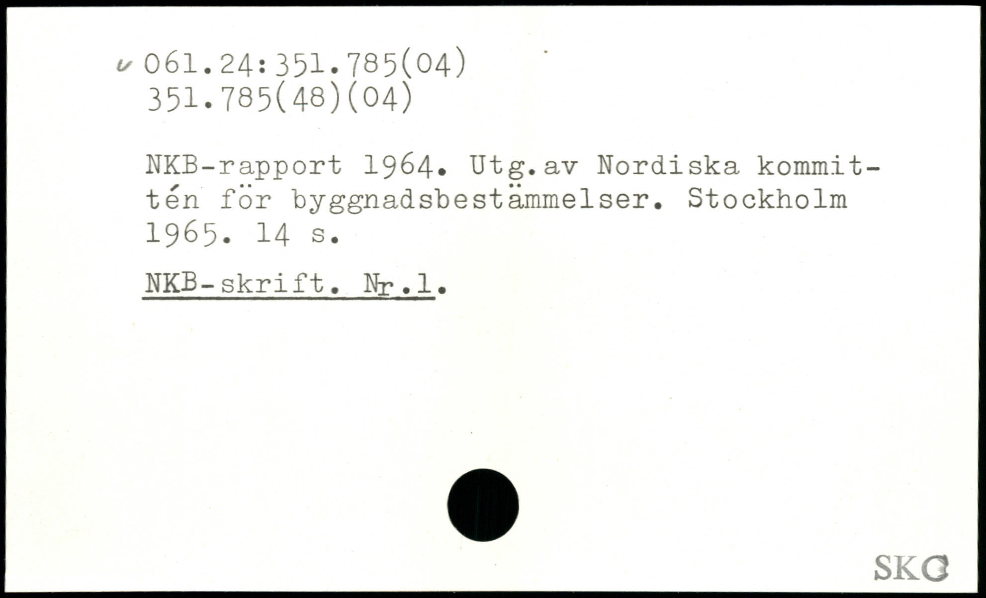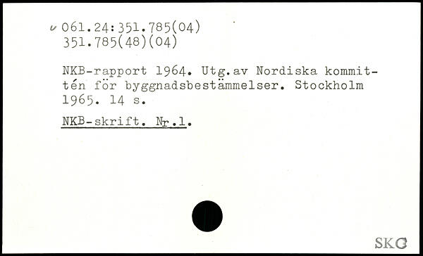 NKB-rapport 1964. Utg.av Nordiska kommittén for byggnadsbestämmelser.