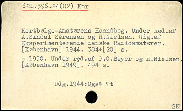 Kortbølge-Amatørens Haandbog. Under Red.af A.Sindal Sørensen og H.Nielsen. Udg.af Eksperimenterende danske Radioamatører.