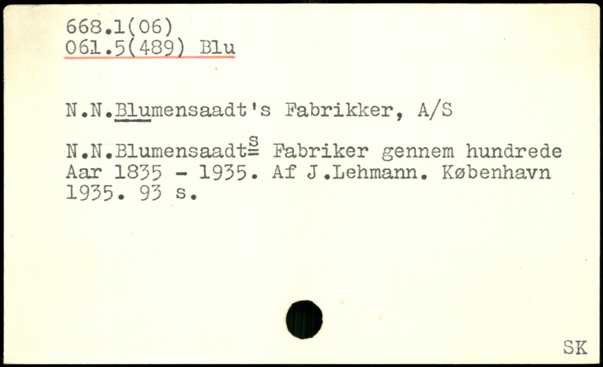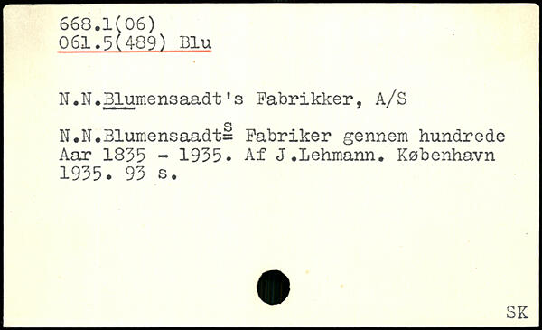 N.H.Blumensaadt's Fabrikker, A/S N.N.Blumensaadt= Fabriker gennem hundrede Aar 1835 - 1935. Af J.Lehmann.