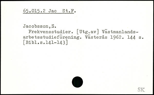 Frekvensstudier. [Utg.av] Vastmanlands-arbetsstudieforening. Västerås 1962.