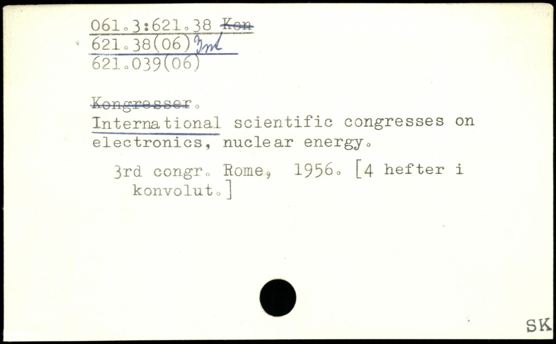 Kong^Q'Sger 0 Internationa.l scientific congresses on electronics, nuclear energy, 3rd congr, Rome. 1956o [4 hefter i konvolut o]