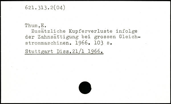Zusätzliche Kupferverluste infolge der Zahnsät'tigung bei grossen Gleich-strommaschinen. 1966.