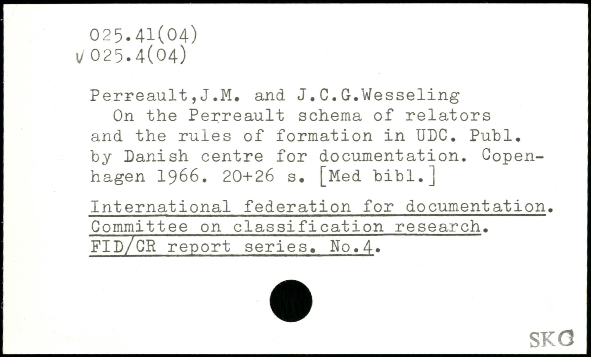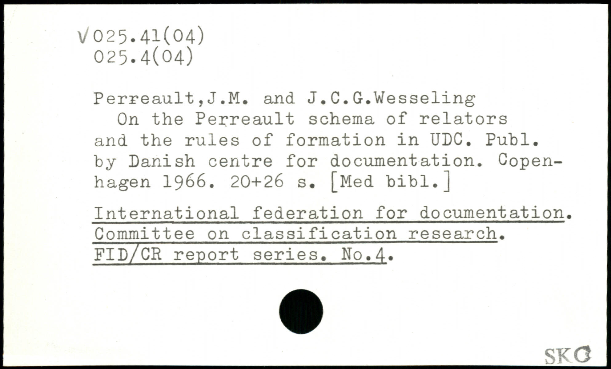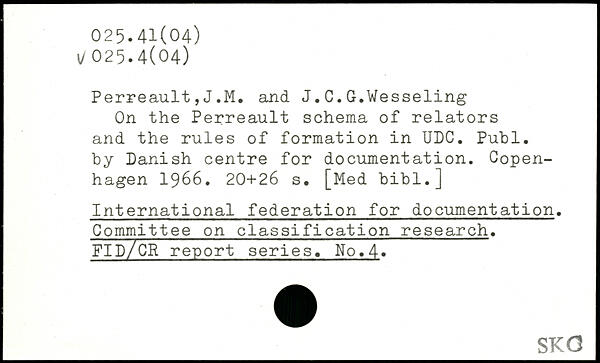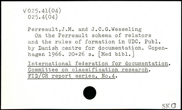 Perreault,J.M. and J.C.G.Wesseling On the Perreault schema of relators and the rules of formation in UDC.