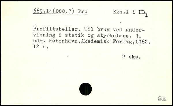 Profiltabeller. Til brug ved undervisning i statik og styrkelære.