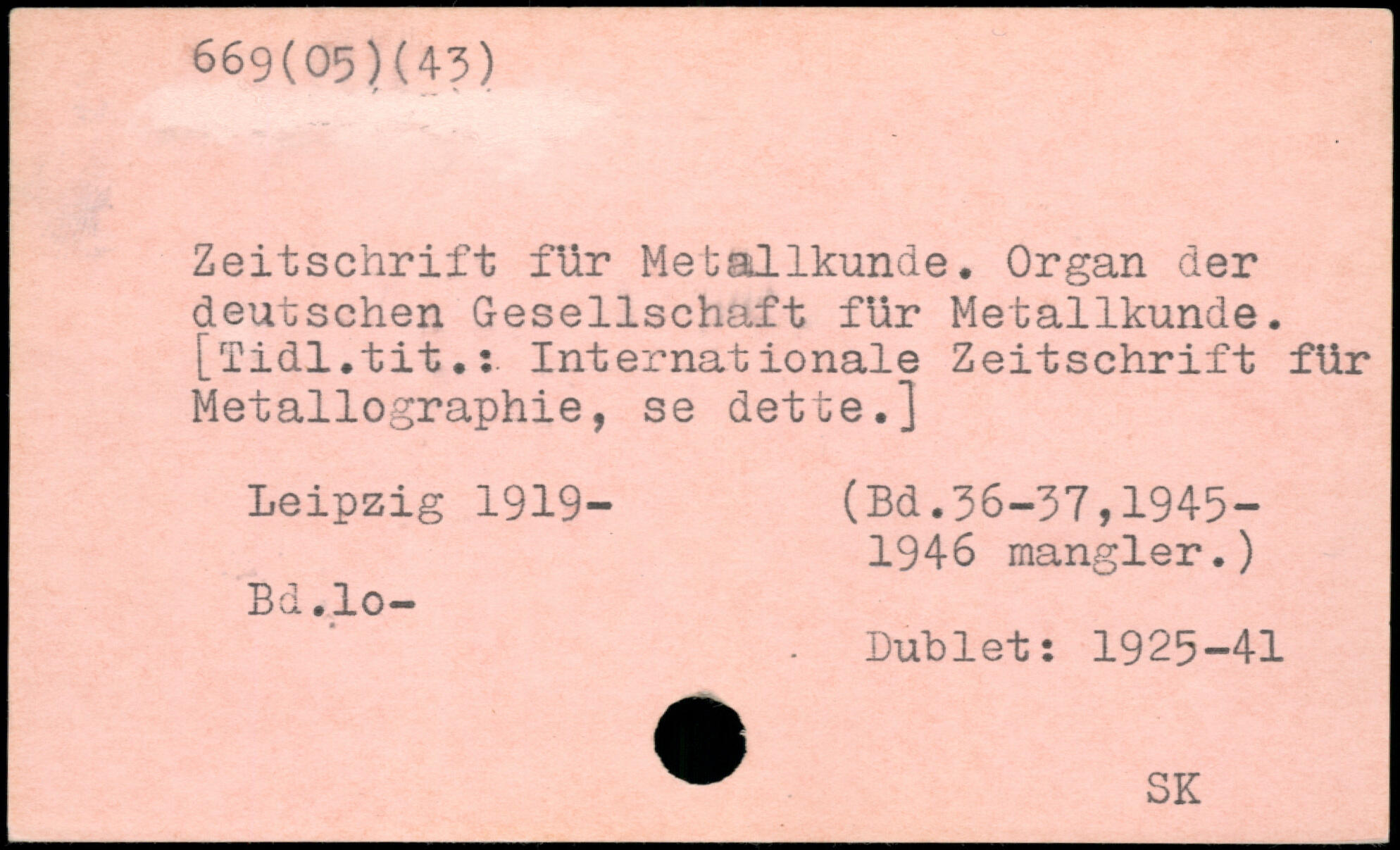 Zeitschrift für Metallkunde, Organ der deutschen Gesellschaft für Metallkunde. [Tidl.tit.: Internationale Zeitschrift für Metallographie, se dette.]