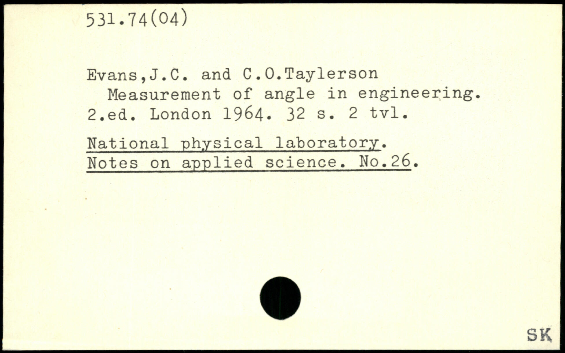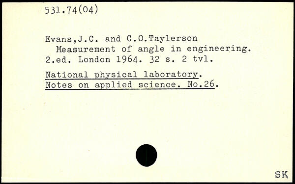 Evans,J.C. and C.0.Taylerson Measurement of angle in engineering.