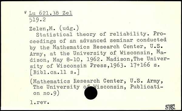 Statistical theory of reliability. Proceedings of an advanced seminar conducted by the Mathematics Research Center, U.S. Army, at the University of Wisconsin, Madison, May 8-10, 1962. Madison,The University of Wisconsin Press,1963.
