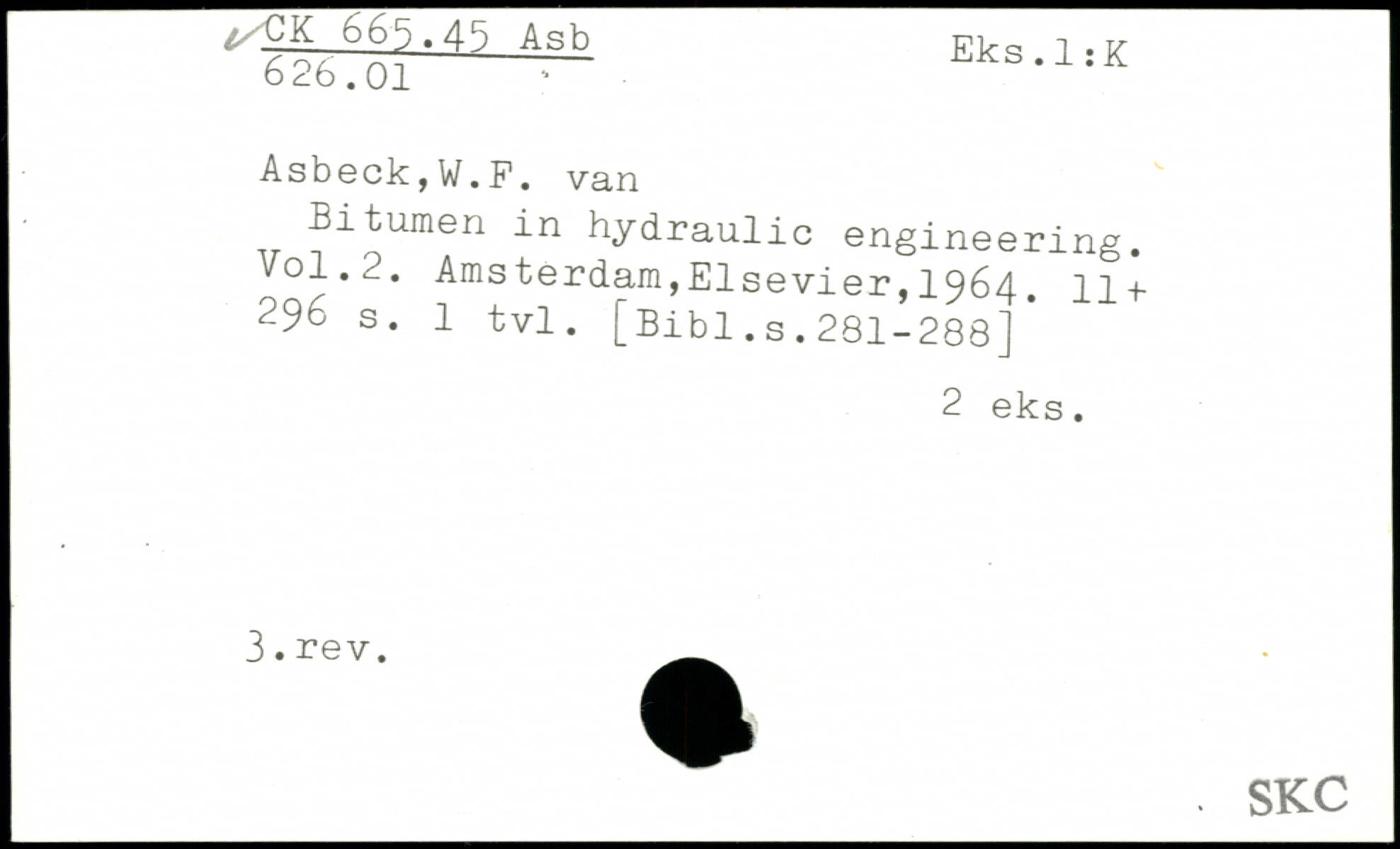 z-€K6|5Al_Ask Eks.ltK Asbeck,W.F. van Bitumen in hydraulic engineering. ^ms^er^am>Elsevier, 1964. H+-29o s. 1 tvl.
