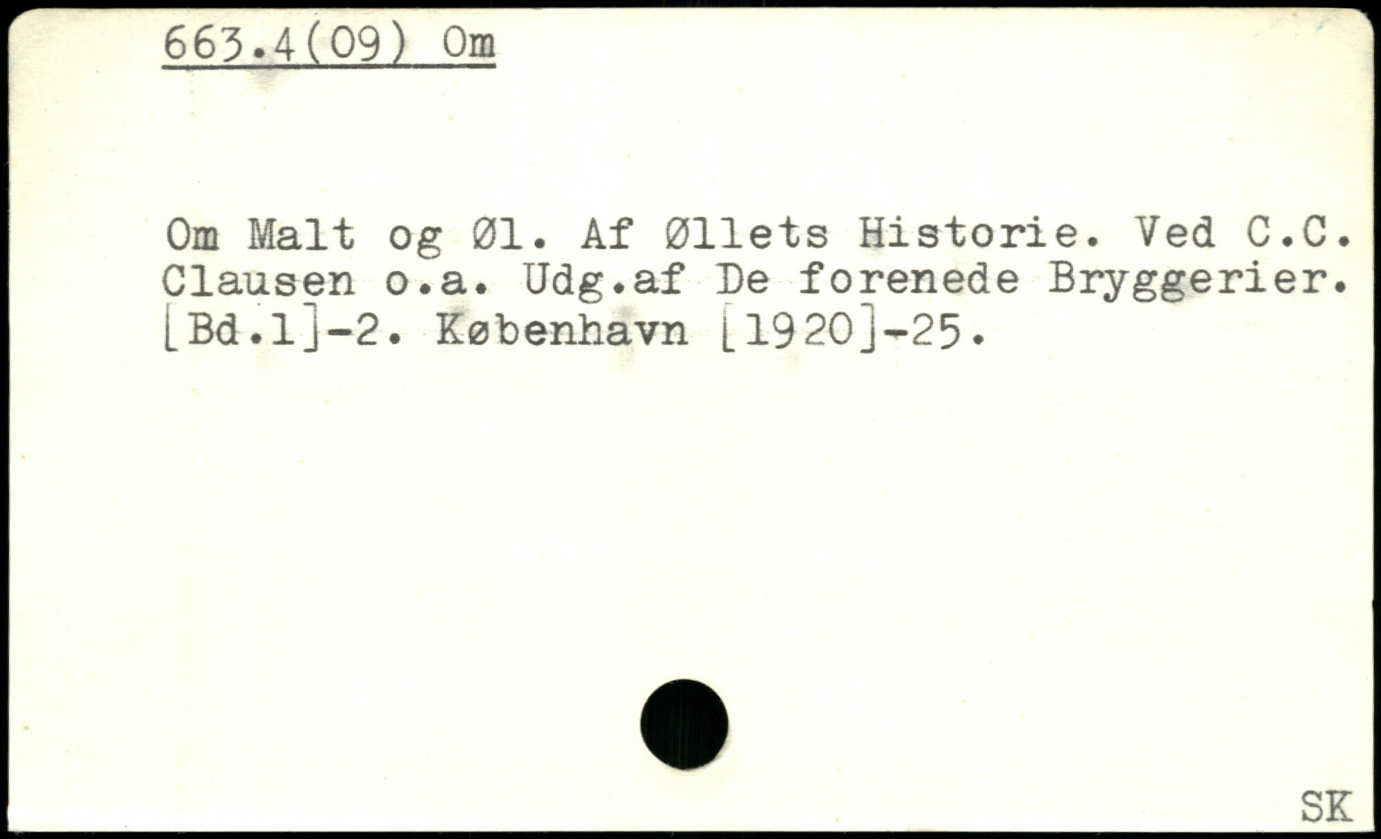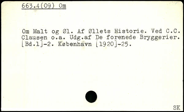 Om Malt og 01. Af Øllets Historie. Ved C.C. Clausen o.a. Udg.af De forenede Bryggerier. [Bd.lj-2. København L1920J-25.