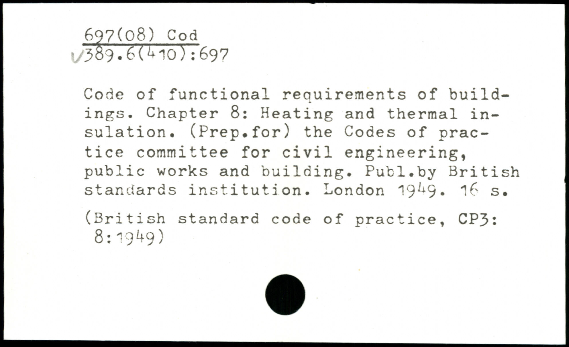 Code of functional requirements of buildings. Chapter 8: Heating and thermal insulation. (Prep.for) the Codes of practice committee for civil engineering, public works and building.