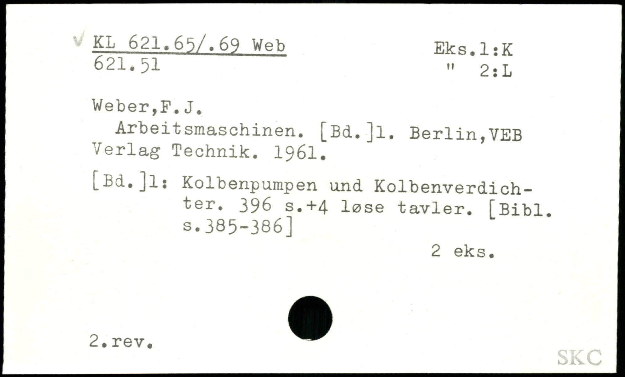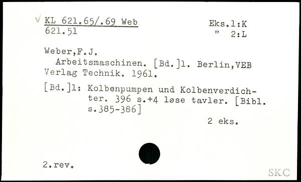 Arbeitsmaschinen. [Bd.Jl. Berlin,VEB Verlag Technik. 1961. [Bd.Jl; Kolbenpumpen und Kolbenverdichter.