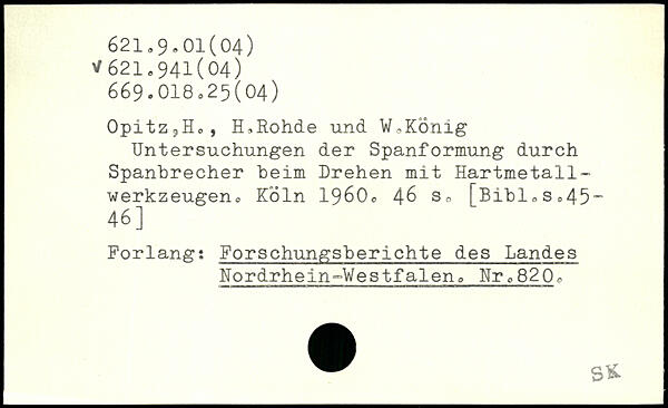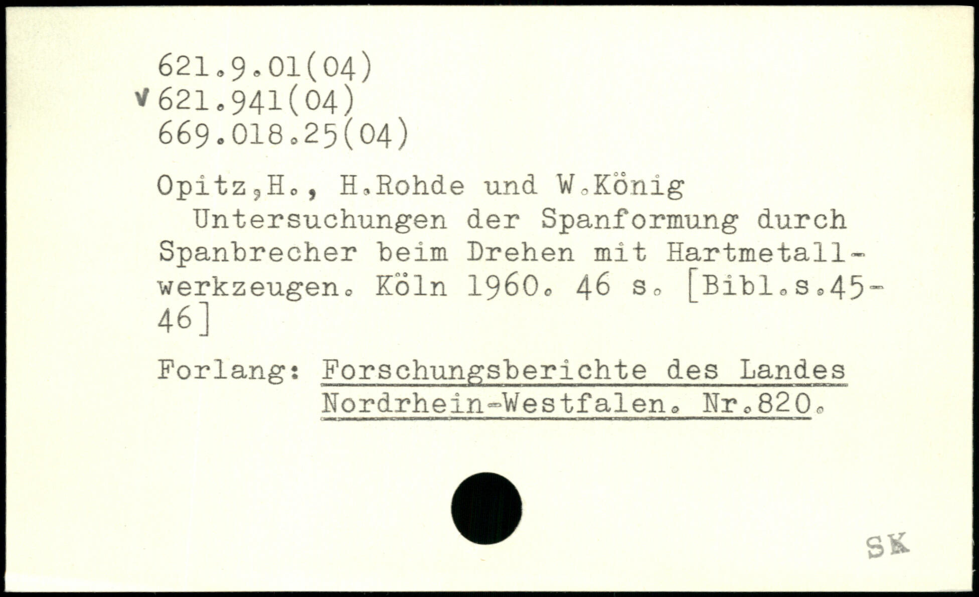 OpitZjHo, H,Rohde und W,König Untersuchungen der Spanformung durch Spanbrecher beim Drehen mit Hartmetallwerkzeugeno