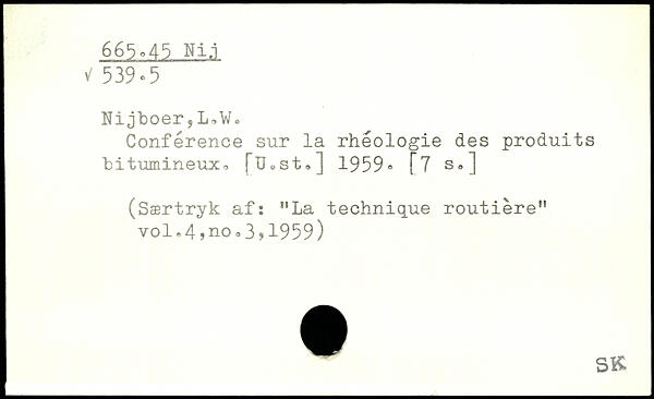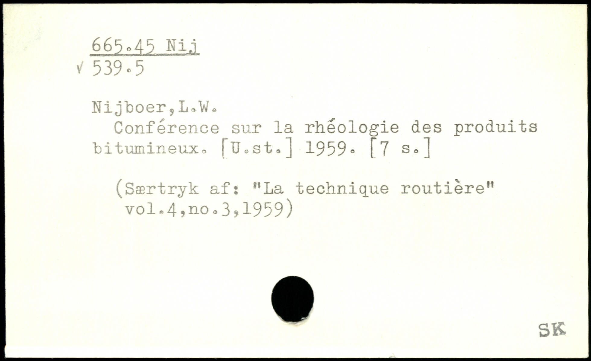 Conférence sur la rhéologie des produits bitumineux,, fU,st.] 1959, (Særtryk af: "La technique routière"
