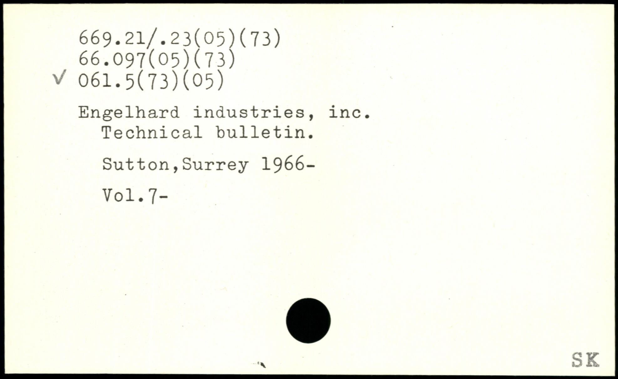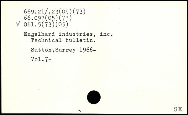 Engelhard industries, inc. Technical bulletin. Sutton,Surrey 1966- _■._SK
