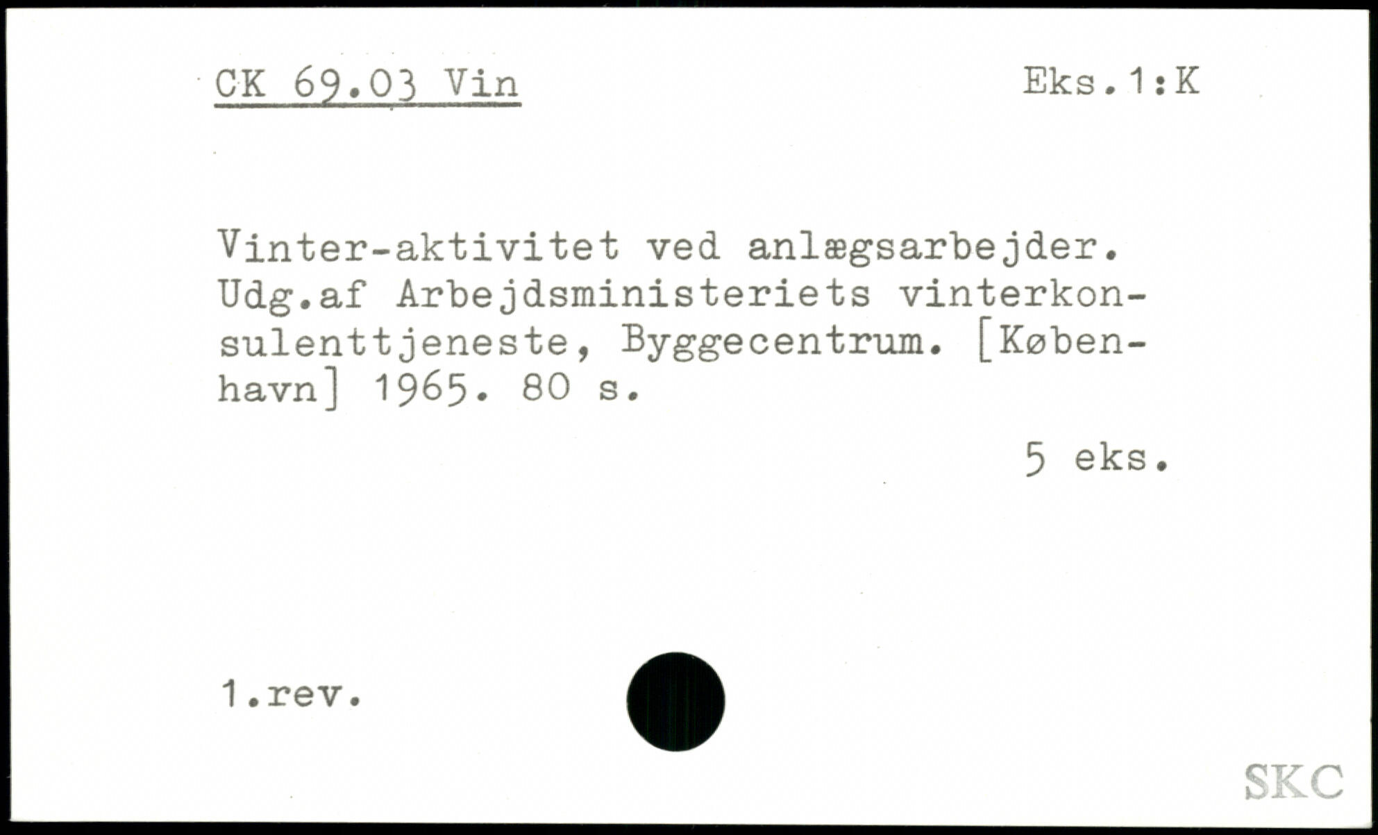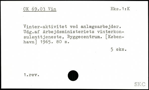 Vinter-aktivitet ved anlægsarbejder. Udg.af Arbejdsministeriets vinterkonsulenttjeneste, Byggecentrum.
