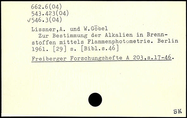 Lissner,A. und W.GÖDel Zur Bestimmung der Alkalien in Brennstoffen mittels Flammenphotometrie.