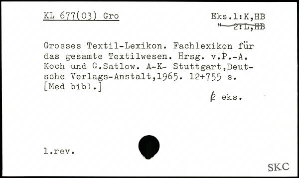 H—2TC7ffB Grosses Textil-Lexikon. Fachlexikon für das gesamte Textilwesen. Hrsg. Koch und G.Satlow.