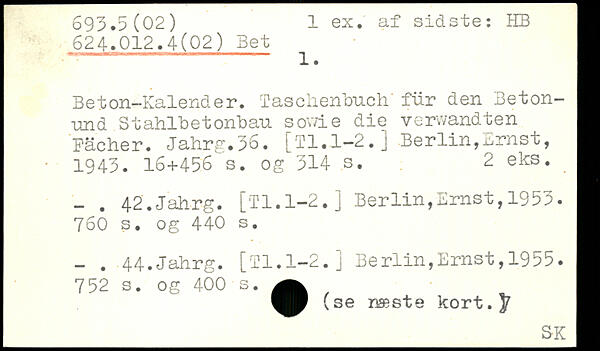 Beton-Kalender. Taschenbuch für den Beton- H und Stahlbetonbau sowie die verwandten H Bacher. Jahrg.36. [TI.1-2.] Berlin,Ernst, H 1943. 16+456 's. og
